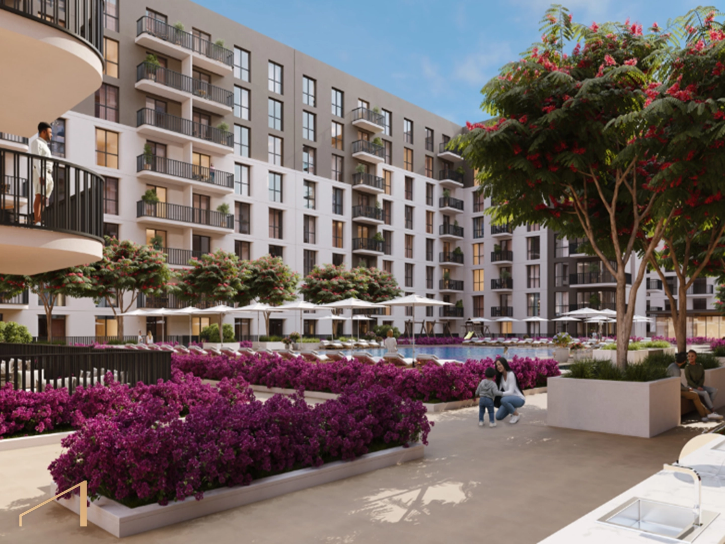 - High-floor apartment with direct pool views