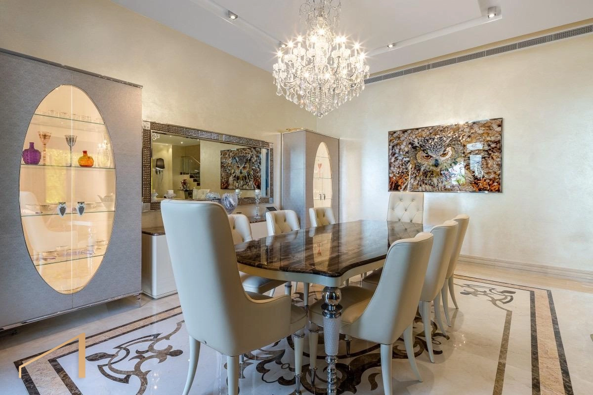 Step into sophistication with this fully furnished and tastefully upgraded 5-bedroom villa, curated with designer Visionnaire furniture and exceptional attention to detail. Enjoy the privacy of your own private swimming pool and direct access to the beach, all while taking in uninterrupted sea views from your spacious terrace. The sleek, fully fitted Hacker kitchen with Miele appliances sets the stage for luxury living