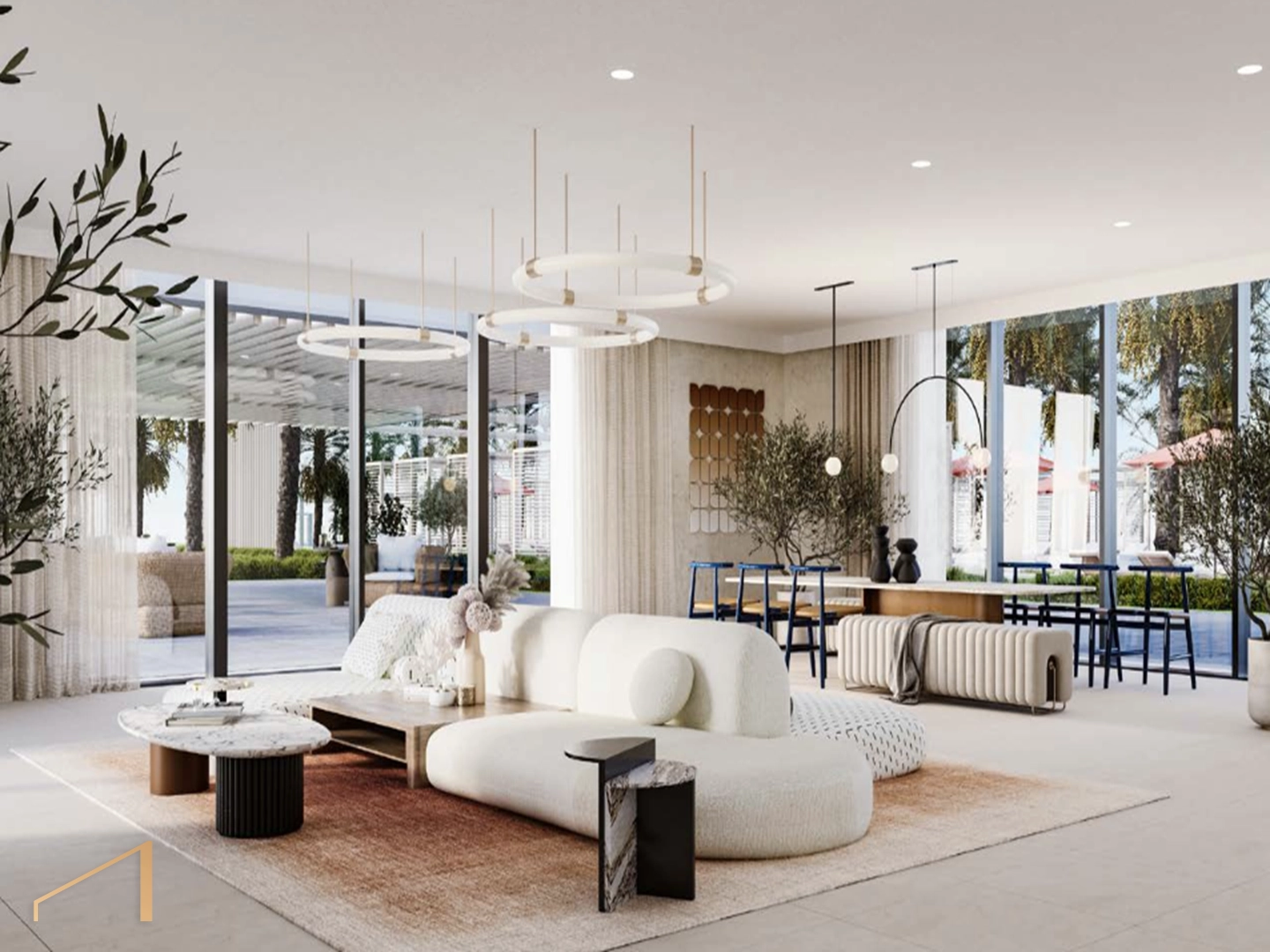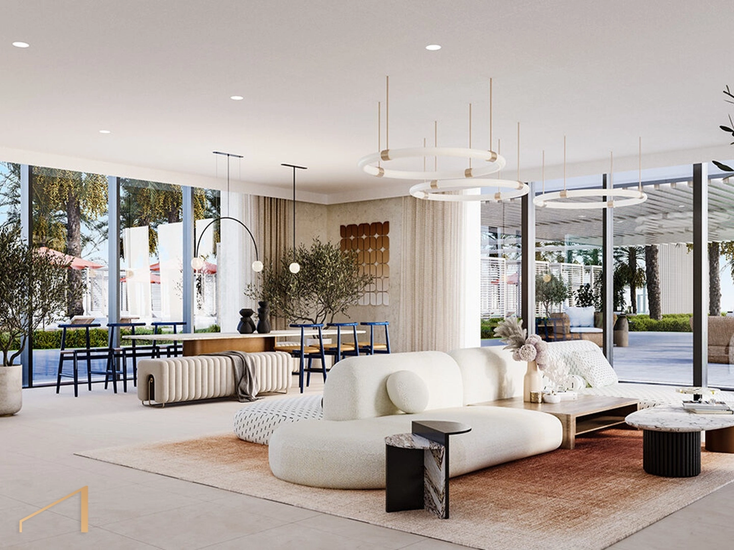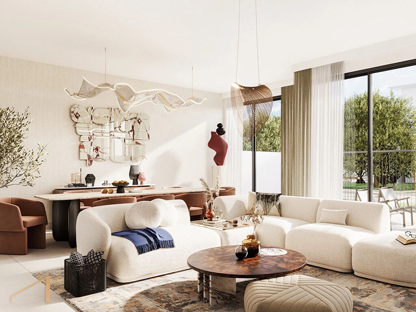 - Open-plan living and dining areas